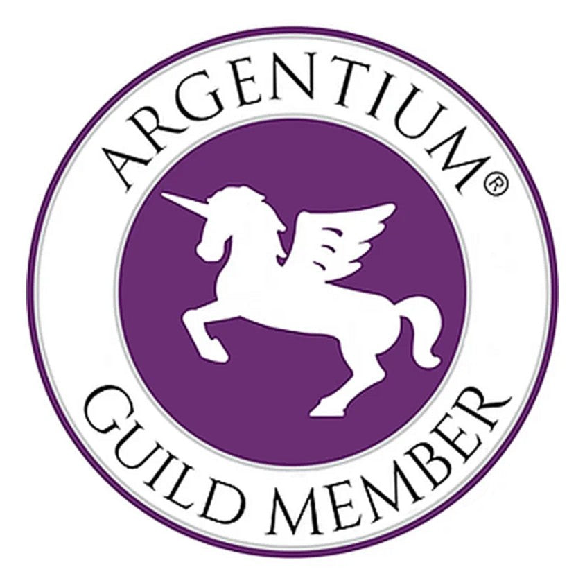 When you see the winged unicorn, it tells you two things: the piece was made with genuine Argentium Silver, and the artist is committed to working with a higher standard of craftsmanship, ethics, and material quality. As an Argentium Qualified Maker, I use this mark with intention, it represents authenticity, care, and a little bit of magic in every piece.