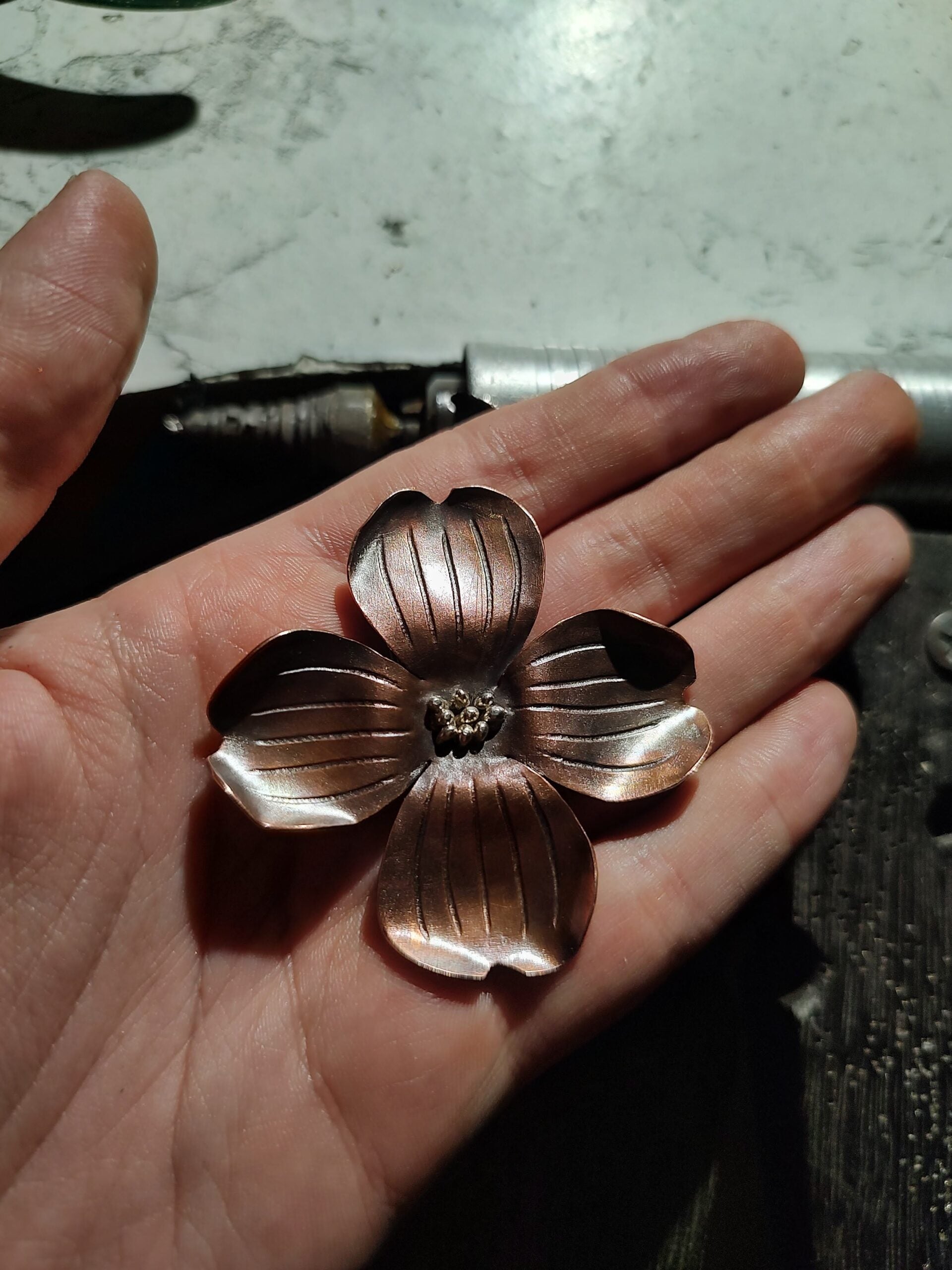 Each design is hand-fabricated using traditional metalsmithing techniques, shaping raw materials into carefully constructed forms.